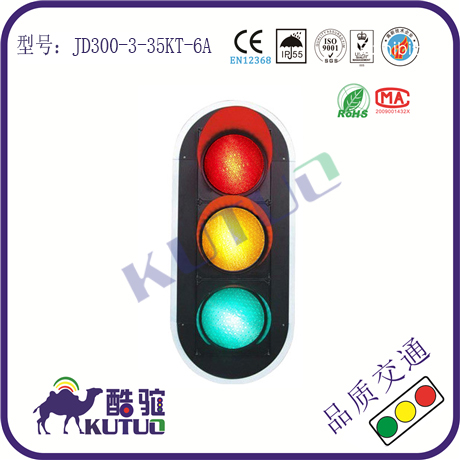 竖向安装时,自上向下为红黄绿色机动灯、红色右转方向指示灯。